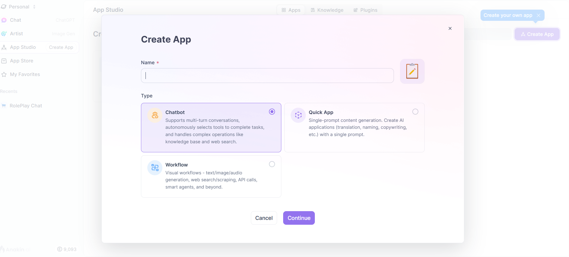 - Create an app. Go to App Studio and choose Create App. Give it a name and choose Chatbot. Choose the Dolphin Mixtral model and add your prompt there.;